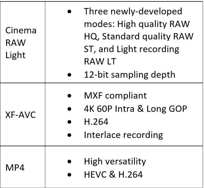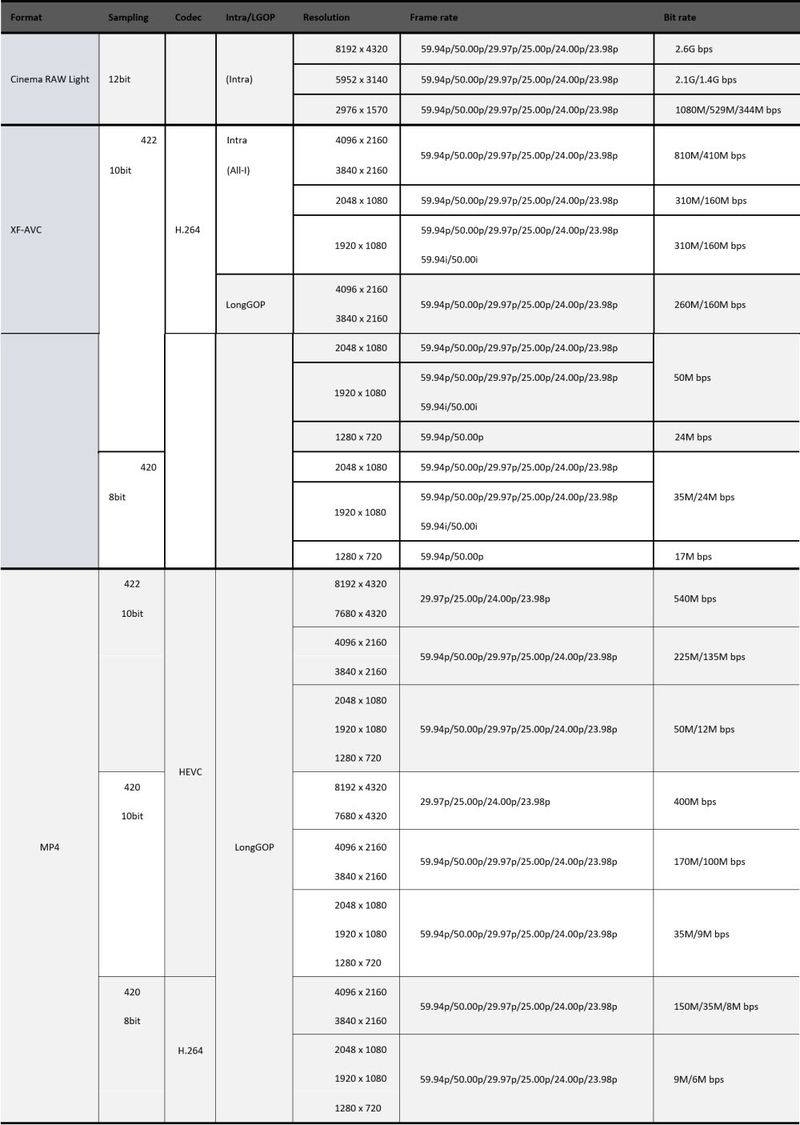 以下是EOS R5C視頻格式和參數一覽: